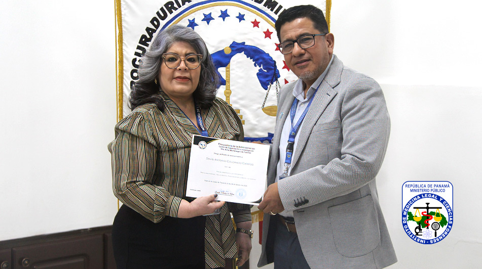 El evento, desarrollado en el Auditorio Azul de la Procuraduría de la Administración en Llanos de Curundu, contó con la participación de destacados especialistas del Instituto de Medicina Legal y Ciencias Forenses (IMELCF): la Mgter. Elinir Marín, perito forense, y el Mgter. David Colorado, psicólogo forense.