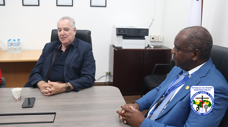 El Director General del Instituto de Medicina Legal y Ciencias Forenses (IMELCF), Abdiel Abel Rentería Ramos, recibió la visita del Licdo. Juan Ricardo Martín Gómez Hecht, Coordinador Regional del Programa SMART FORENSE de la Oficina de las Naciones Unidas contra la Droga y el Delito (UNODC).
